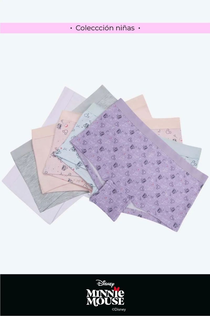Descubre la nueva colección Disney, una encantadora línea del segmento Kids .Paqueteria x5 de panties con silueta tipo bóxer que ofrece una excelente cobertura en las piernas, brindando comodidad y libertad de movimiento. Confeccionados en un material que combina la resistencia del poliester y la frescura del algodón. Cuentan con un elástico delicado que se adapta suavemente a la cintura y un refuerzo en algodón para mayor frescura e higiene en la zona íntima. Una prenda ideal para el día a día.
