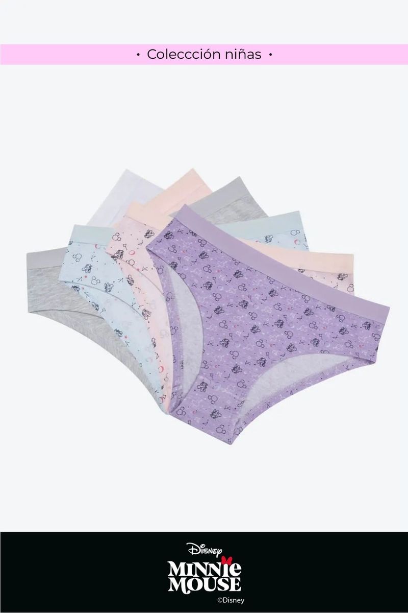 Descubre la nueva colección Disney, una encantadora línea del segmento Kids .Paqueteria X7 de panties con silueta tipo hipster que ofrece una cobertura media en las piernas, brindando comodidad y libertad de movimiento. Confeccionados en un material que combina la resistencia del poliester y la frescura del algodón. Cuentan con un elástico delicado que se adapta suavemente a la cintura y un refuerzo en algodón para mayor frescura e higiene en la zona íntima. Una prenda ideal para el día a día.