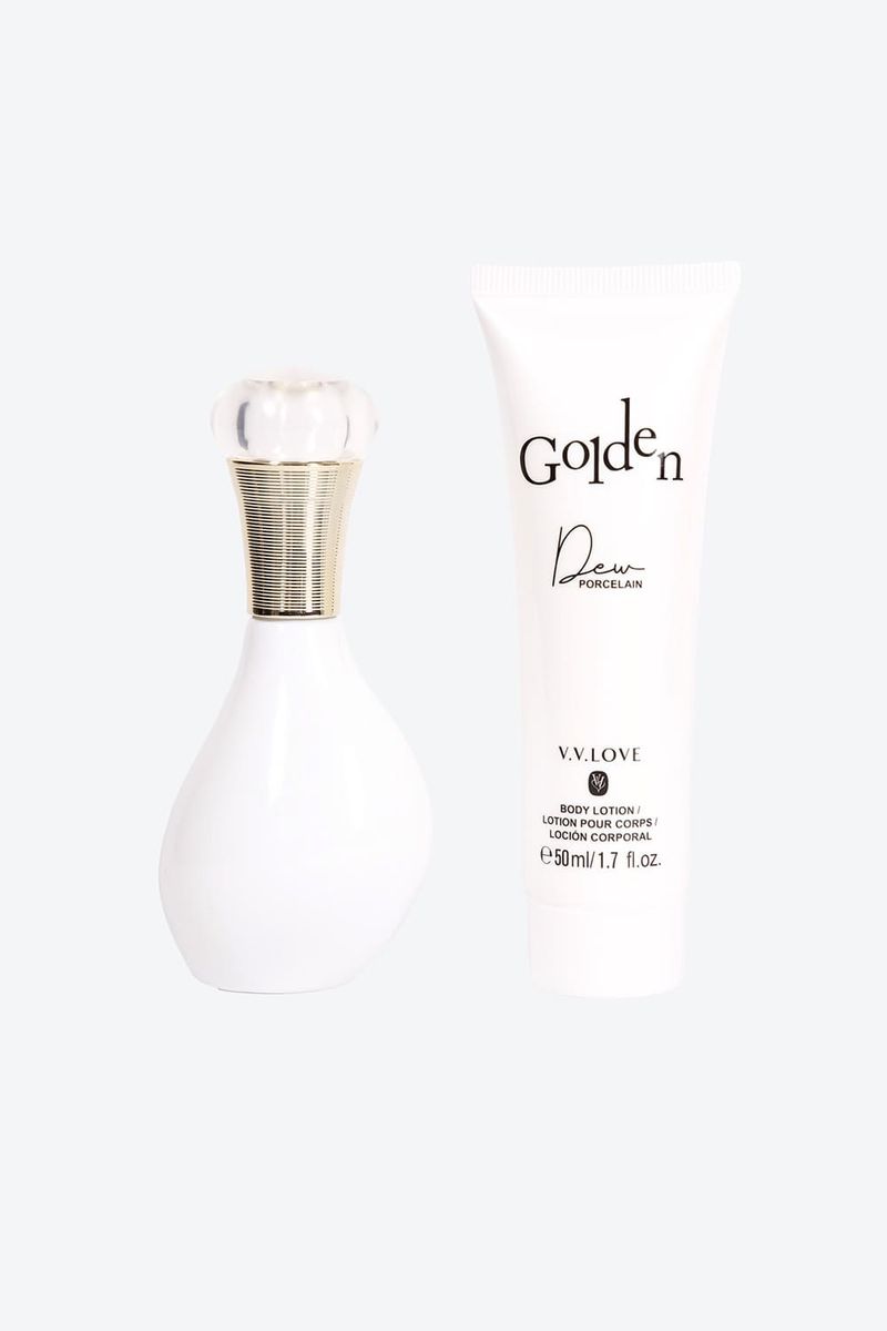 Una experiencia delicada y brillante. Este set combina el perfume Golden Dew con su crema corporal complementaria para ofrecer hidratación profunda y una fragancia luminosa que dura.