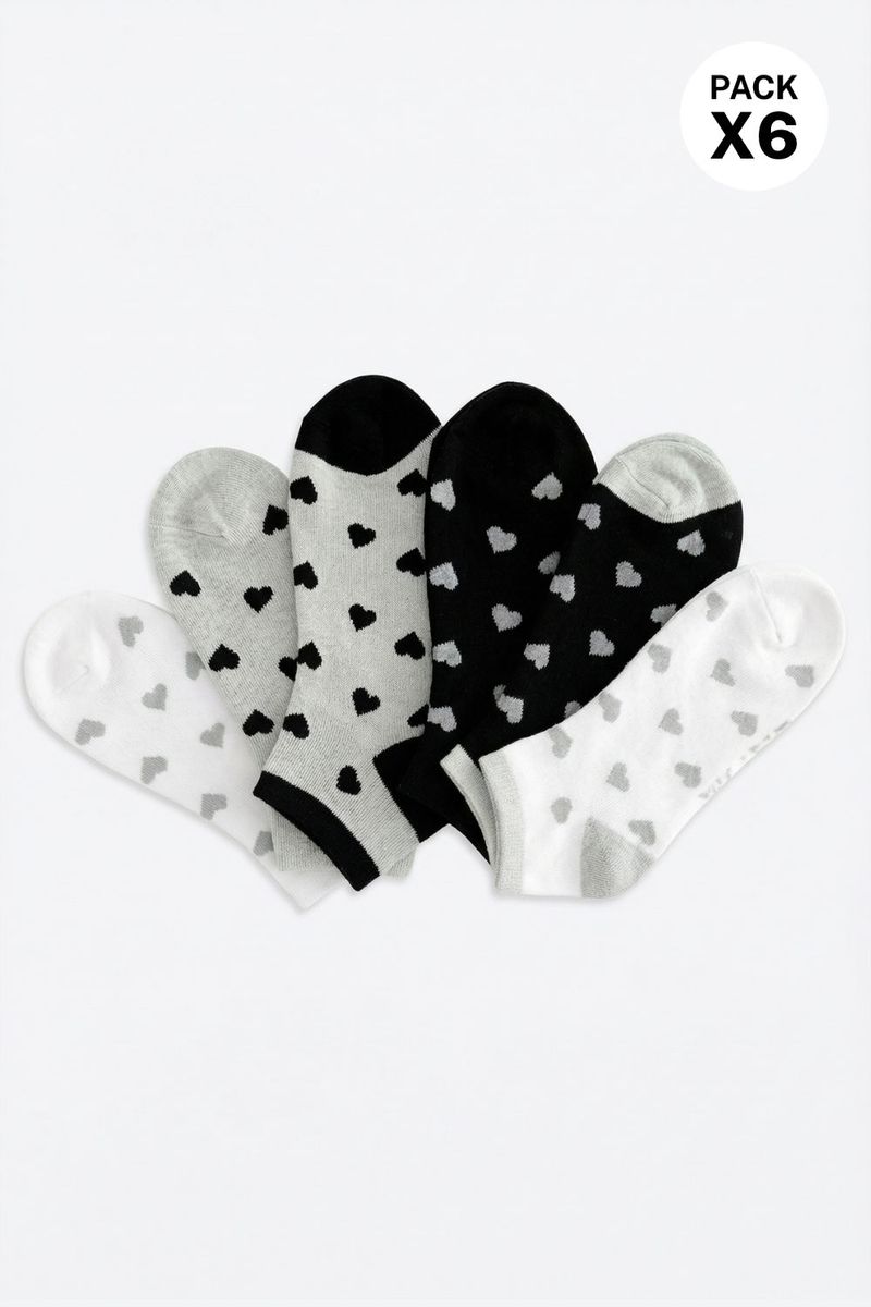 Pack de 6 medias tipo tobillera para mujer perfectas para combinar con distintos tipos de calzado. Confeccionadas en poliéster, un material resistente y cómodo, brindan un ajuste ligero y transpirable. Ideales para el uso diario, garantizando confort y durabilidad en cada paso.