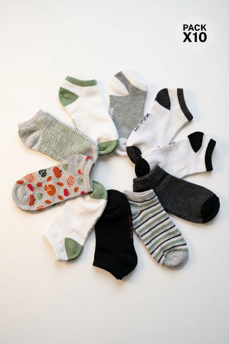 Pack de 10 medias tipo talonera para mujer perfectas para combinar con distintos tipos de calzado. Confeccionadas en poliester, un material que aporta resistencia y comodidad, ofrecen un ajuste ligero y transpirable. Su diseño versátil y suave garantiza una sensación agradable durante todo el día, ideal para el uso diario.