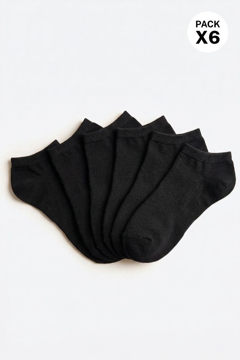 Pack de 6 medias tipo tobillera para mujer perfectas para combinar con distintos tipos de calzado. Confeccionadas en poliéster, un material resistente y cómodo, brindan un ajuste ligero y transpirable. Ideales para el uso diario, garantizando confort y durabilidad en cada paso.