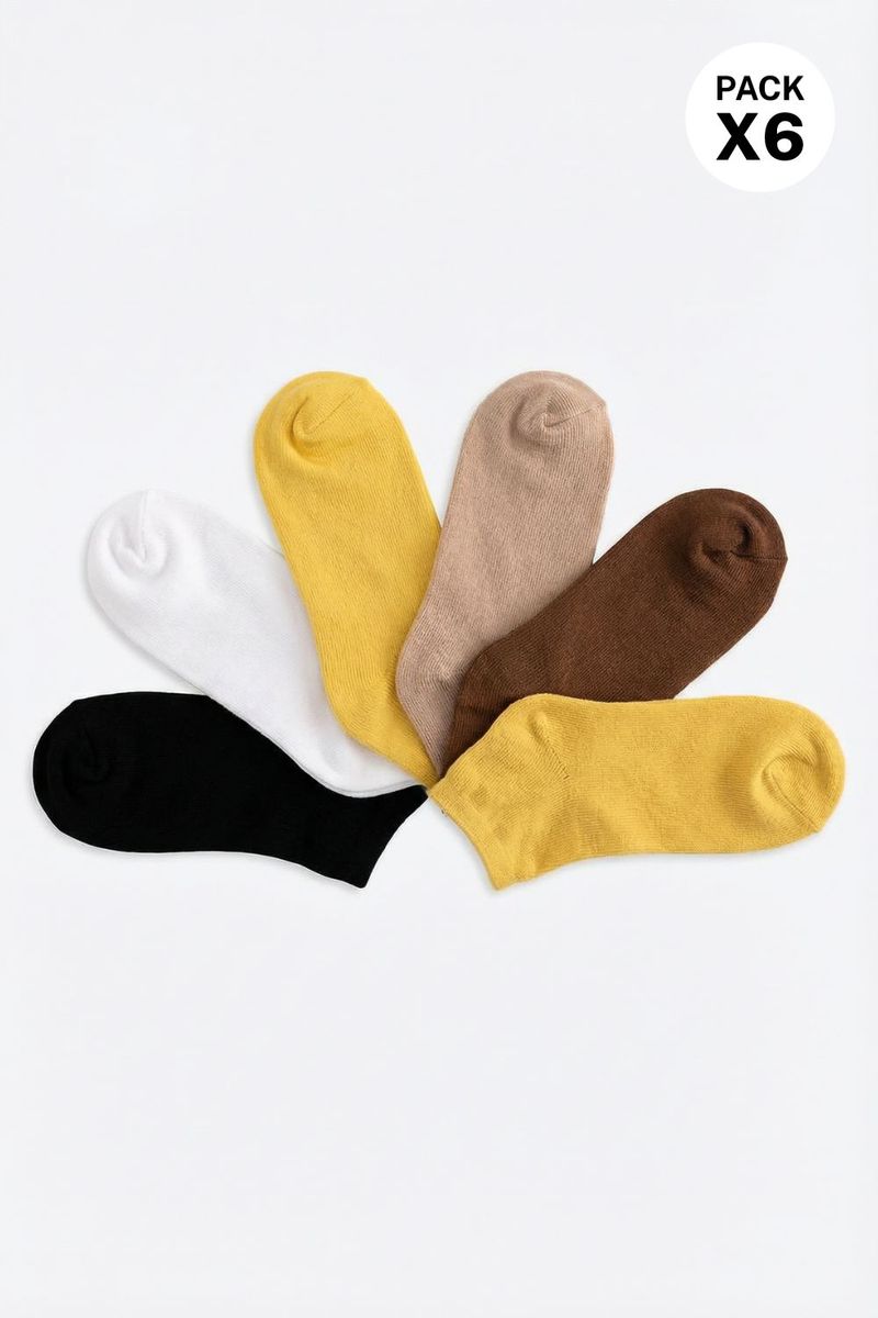 Pack de 6 medias tipo tobillera para mujer perfectas para combinar con distintos tipos de calzado. Confeccionadas en poliéster, un material resistente y cómodo, brindan un ajuste ligero y transpirable. Ideales para el uso diario, garantizando confort y durabilidad en cada paso.