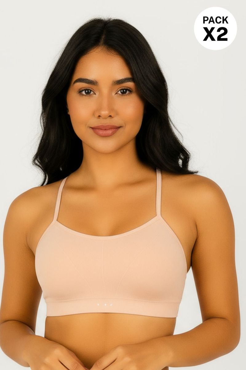 Este pack de dos tops une practicidad y diseño en una prenda esencial para el día a día. Confeccionados en poliamida, brindan elasticidad, comodidad y durabilidad. Gracias a la tecnología seamless, el top se adapta suavemente sin generar marcas, mientras sus tirantes delgados cruzados en la espalda aportan soporte y estilo. El escote redondo y la base delgada lo hacen ideal para usar bajo cualquier prenda.