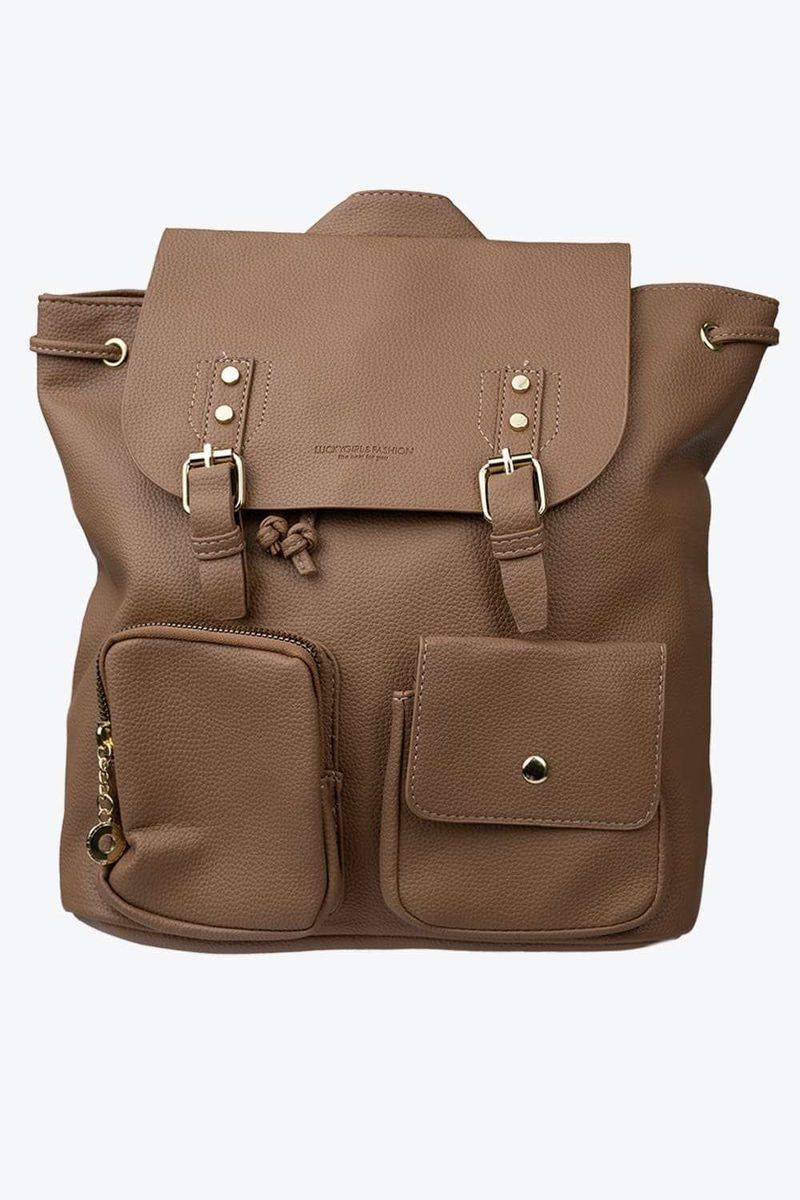 Este mini morral destaca por su diseño clásico y lleno de estilo. Su tapa frontal con doble broche decorativo, cordón de ajuste y dos bolsillos exteriores son ideales para llevar de manera organizada diferentes objetos. Su tamaño compacto lo hacen ideal para complementar diferentes looks. No pasar sobre superficies ásperas. Lavar a mano y secar a la sombra.