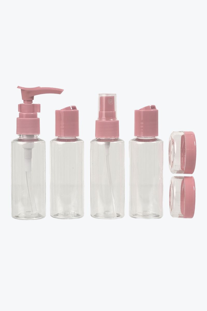 Set de botellas de viaje X8 unidades, con diseño practico y funcional, cuenta con tapa segura y diseño compacto, evitando derrames. Son fáciles de llenar, limpiar y permite llevar productos esenciales, bien organizados.